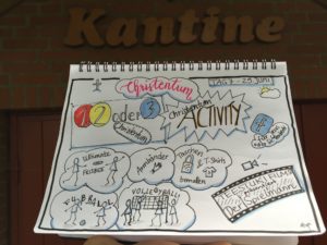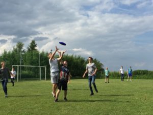 Das prasseln des Regens weckte uns alle frühzeitig aus unserem tiefen Schlaf. Eines war sofort klar: Frühsport fällt aus!!! Als dann die Leiter kamen merkte man an dem Jubeln, dass auch die letzten gemerkt haben, dass es regnet. Nach dem Frühstück klarte das Wetter wieder auf. Perfekt gelaufen! Das Plenum handelte vom Christentum. Wir haben “1,2 oder 3” gespielt. Die Sendung kannten viele daher mussten keine Regeln erklärt werden und es war schnell zu Ende gespielt.