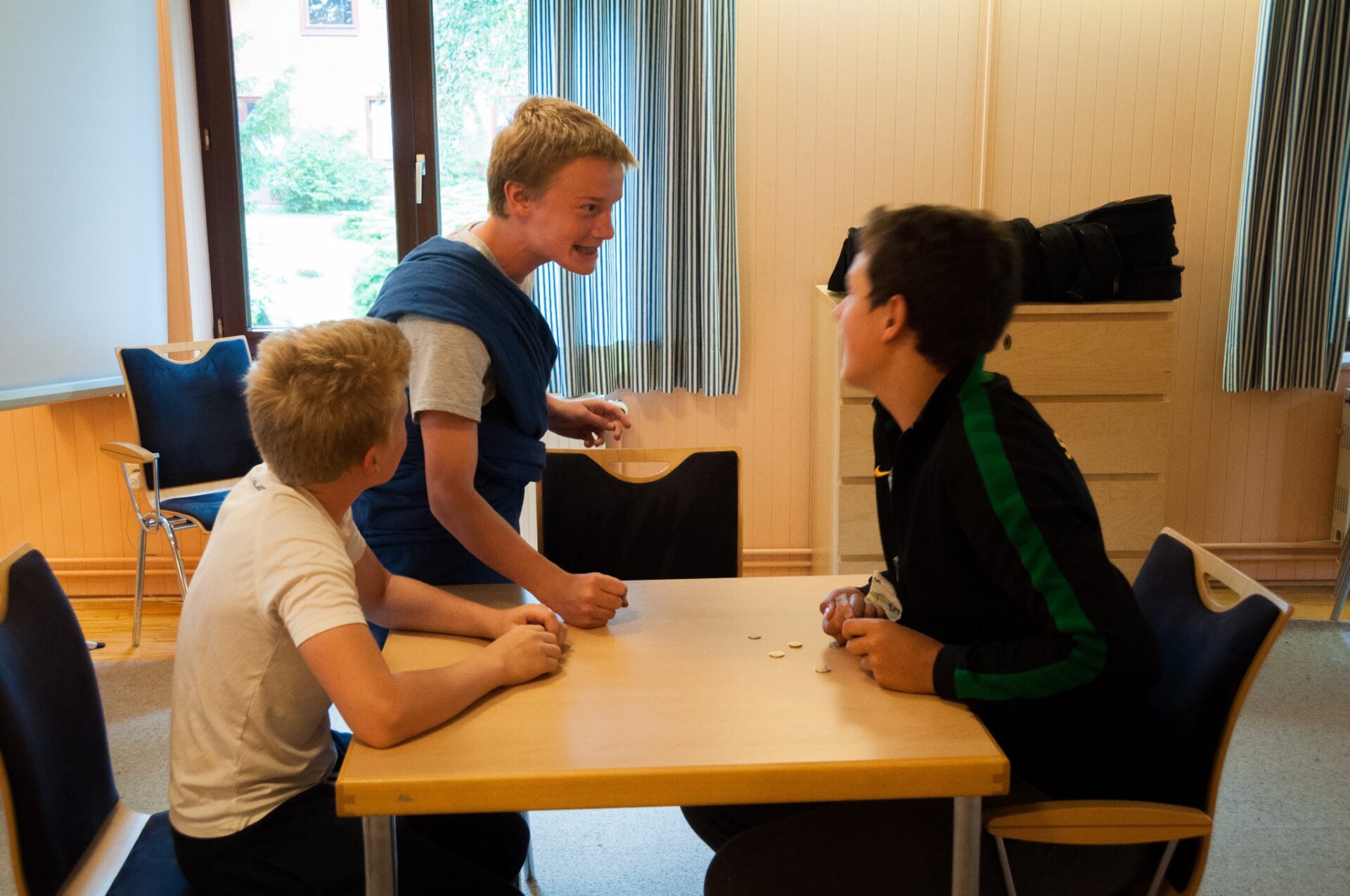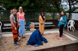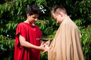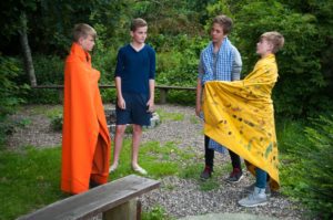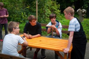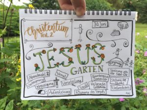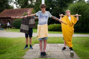 Wie immer wurden wir um 8 Uhr geweckt. Und dann mussten wir um 8.15 Uhr leider wieder Frühsport machen. Ganz normal gab es leckeres Frühstück. Während des um 10 Uhr beginnenden Plenums wurde uns mitgeteilt, dass wir heute Nachmittag den Jesusgarten veranstalten würden. Beim Jesusgarten müssen alle Zimmer und Zelte ein kleines Theaterstück aus dem Leben Jesu aufführen. Die Proben liefen sehr verrückt ab, weil ein paar Leute ihren Text vergessen haben. Außerdem wurden die Konfis sehr erfinderisch, da sie sich selber Requisiten suchen sollten, was dazu führte, dass z. B. Das Kreuz aus dem Flaggenmast, einem Stock und Seilen bestand Die erste Gruppe hat beispielsweise die Taufe von Jesus vorgespielt. Gut war das Stück, dass „Die Speisung der 5000“ zeigte, weil es alle lustig fanden, dass Ali aus der Schubkarre geworfen wurde, was allerdings natürlich zum Stück dazu gehörte. Das Highlight war das „Abendmahl“, da es ein kleines Musical war.