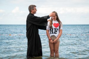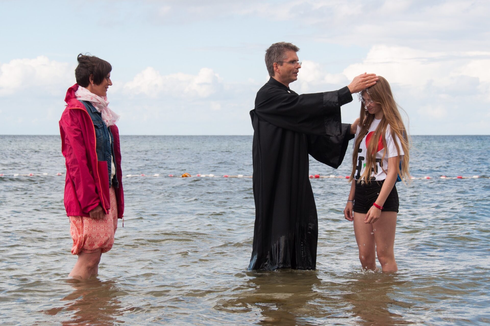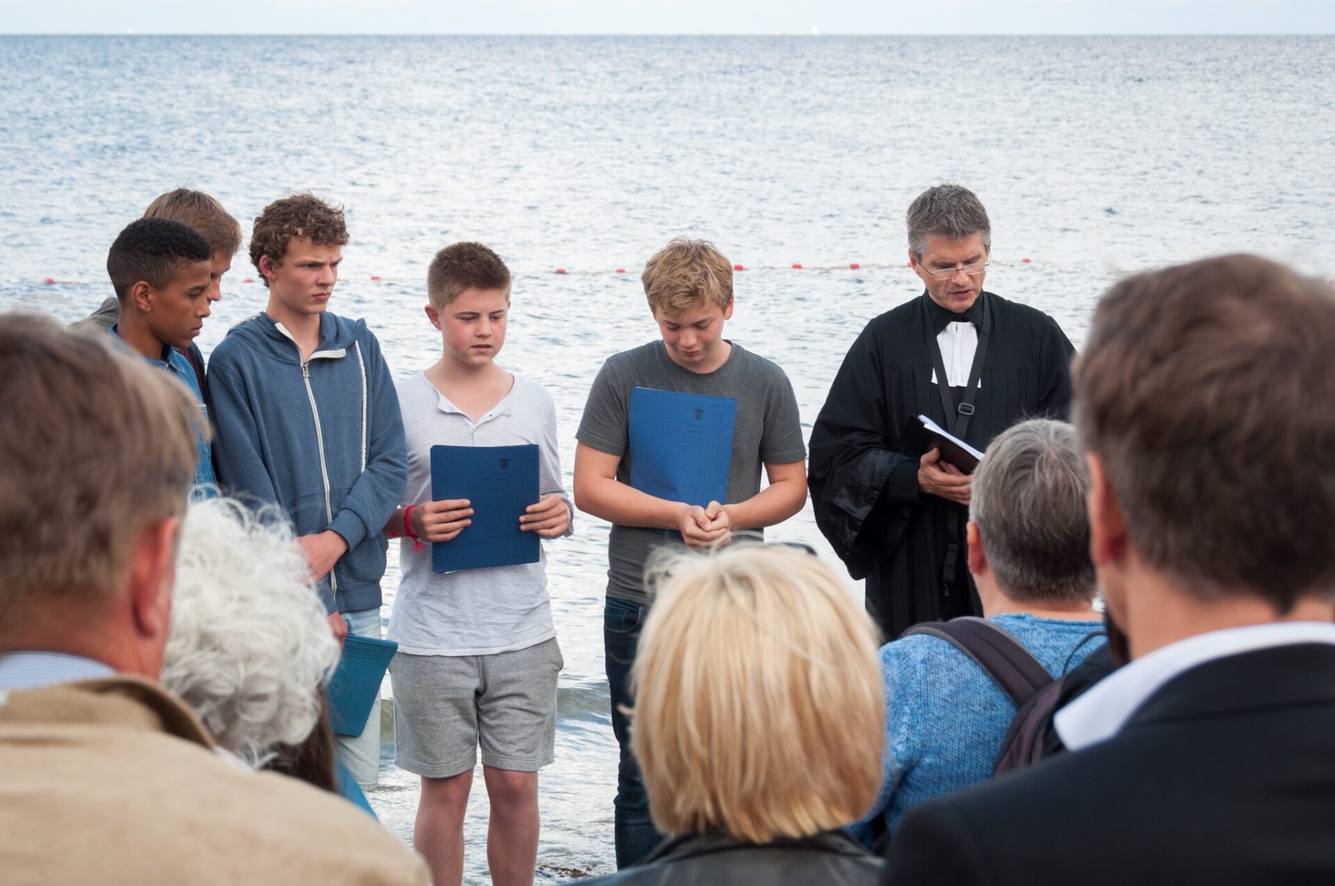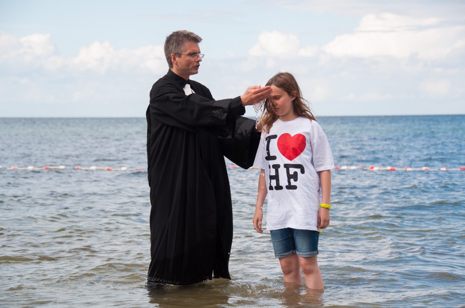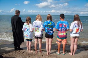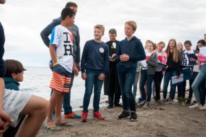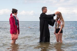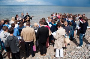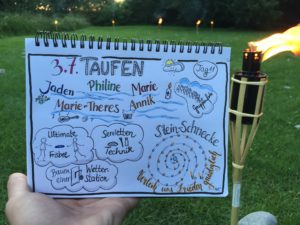 Taufe ist das Stichwort für heute. Denn heute wurden 5 Kinder in der Ostsee getauft. Morgens waren alle schon sehr aufgeregt, doch das war kein Grund den Frühsport ausfallen zu lassen. Nach einer Stärkung am Frühstückstisch sind alle in ihre Pflichtprojekte gegangen. Da drehte sich alles um Taufe. Manche haben die letzten Taufshirts zu Ende bemalt, andere haben die letzten Buchstaben auf die Taufkerzen geklebt. Sogar bei „Wir dürfen singen“ haben wir die Lieder für die Taufe geübt. Nur das Mittagessen hatte nichts mit Taufe zu tun. In der Mittagspause kamen dann alle Gäste. Nach einer kurzen Kuchenausgabe gingen wir alle gemeinsam zum Strand, wo der Gottesdienst stattfand. Die Konfis und Ex-Konfis haben gestern Klausuraufgaben bekommen, die etwas mit Religionsfrieden oder der Taufe zutun hatten. Die Ergebnisse wurden im Gottesdienst vorgestellt. Das Giebelzimmer hat ein Ritual mit ihren Wünschen zum Religionsfrieden erstellt, das Treppenzimmer und die Holstenstube haben Blumensträuße gebunden und die Täuflinge mussten ein Versprechen abgeben und die Sträuße ins Meer werfen. Dann wurde jeder Täufling einzeln in die Ostsee geholt und wurde getauft. Dann sind alle wieder auf das Gelände gegangen und die Eltern wurden rumgeführt. Als alle abgefahren sind, gab es noch ein Fußballspiel. Girlpower gegen Teufelskicker. Am Ende war es ein klares 6:3 für die Teufelskicker. Ein passender Abschluss des Tages war unser kleines „Ritual“.