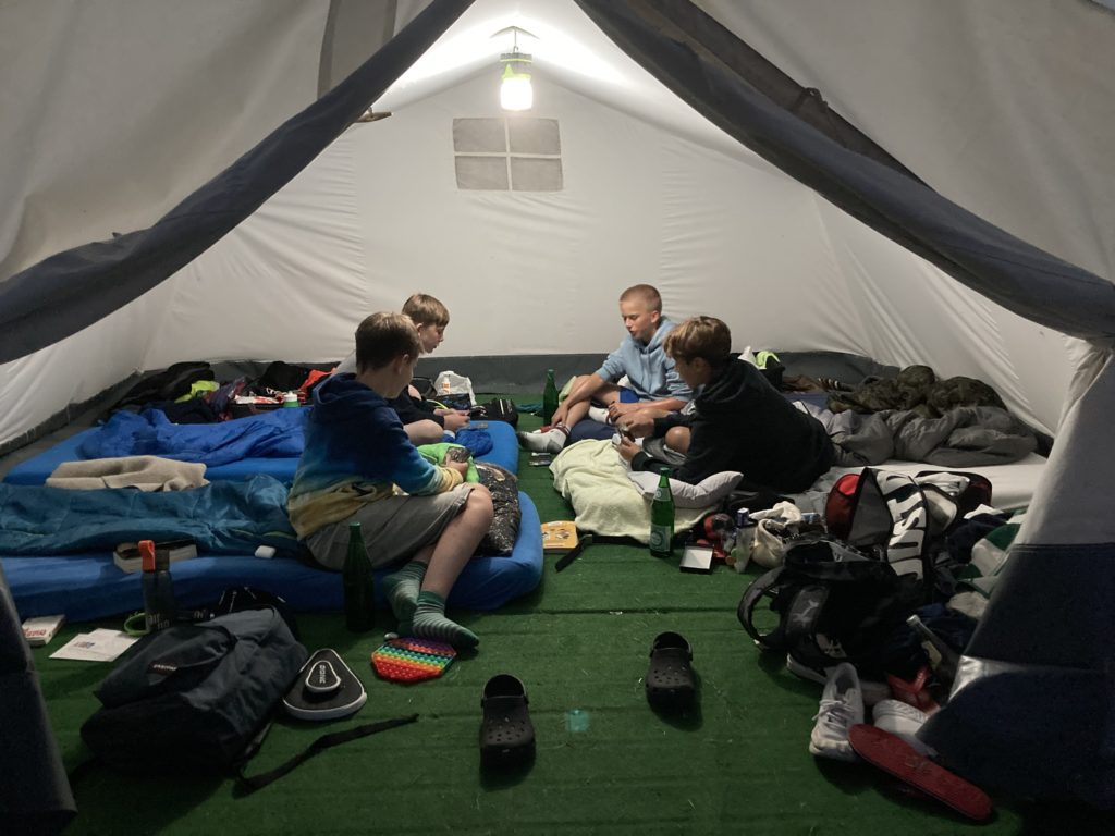 Zwischen Kuchenausgabe und Abendessen wurden Freizeit- und Pflichtprojekte angeboten. Nach dem Abendessen stand uns ein Programmpunkt bevor, auf den sich wohl jeder Jugendleiter und jede Jugendleiterin gefreut hat: Wir gucken einen Film! Gezeigt wurde „Die Chroniken von Hohenfelde“ des TeeStuKi (Teestuben Kino). Anschließend wurde eine kleine Feier jüdischer Art zelebriert, die von den Jugendleitenden gestaltet wurde. Danach ging es für alle in das wohlverdiente Zelt oder Zimmer in einen erholsamen Schlaf!