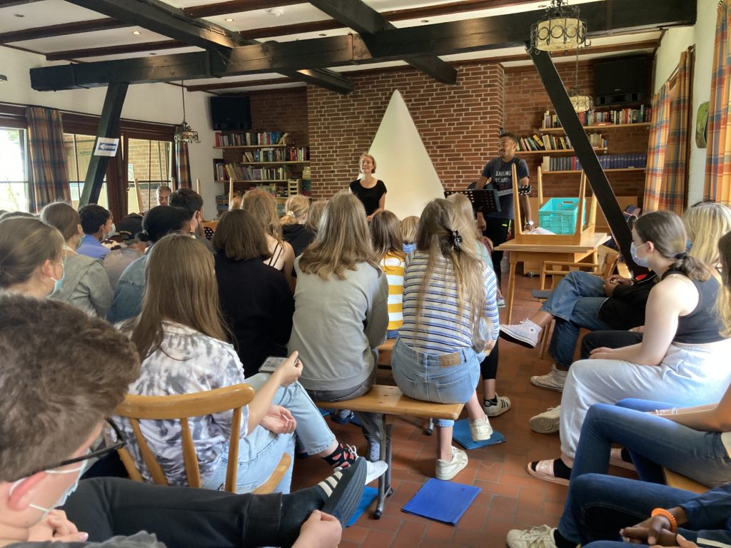 Nach dem Hinduismus und Buddhismus war es Zeit für einen Religionstag, der dem Judentum gewidmet war. Los ging es nach dem – wie immer – fordernden Morgensport und leckerem Frühstück mit einem ersten Plenum. Die Jugendleiter:innen die für diesen Tag verantwortlich waren haben sich etwas ganz besonderes überlegt.