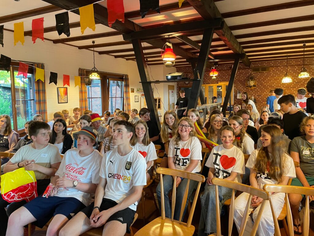 Zum Kennenlernen des Geländes haben wir außerdem ein lustiges Gruppenspiel erleben dürfen. Beim „Speed-Dating“ haben wir uns mit immer neuen Gegenübern über Lieblingsspeisen, Lebensträume und Hobbies unterhalten. Am Abend haben wir einen Brief an uns selbst verfasst und einen ersten Tagebucheintrag in unser Hohenfelde-Tagebuch geschrieben. Und dann haben wir ein Public Viewing in schwarz-rot-gold veranstaltet und die erste Halbzeit des EM-Spiels Deutschland gegen die Schweiz geschaut. War nicht leicht, mit diesem Halbzeitstand ins Bett zu gehen!
