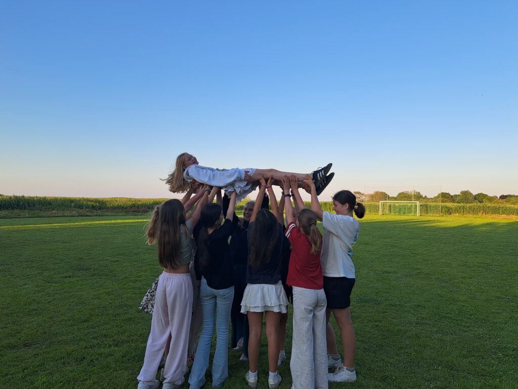 Wir haben in verschiedenen Gruppen Formierungen gebildet und am Nachmittag unterschiedliche Standbilder kreiert und diese vorgeführt. An einer Stelle ist jeder durch eine Allee von Beifall klatschenden Menschen gegangen, das fühlte sich schon gut an. Da den ganzen Tag die Sonne schien, wurde in der Mittagspause Schwimmen angeboten, welches eine große Schar von Konfis an den Strand brachte.
