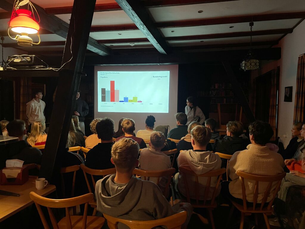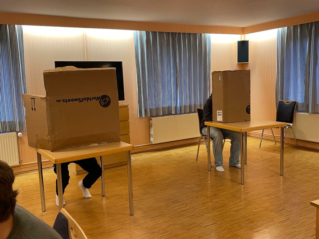 Nach einer tollen Sing-Stunde mit Lea bereiteten wir uns auf eine Wahl im Wahllokal „Kleiner Tagesraum“ vor. Man bekam eine Wahlbescheinigung und musste seinen Personalausweis vorzeigen. Dann bekam man den Wahlzettel und durfte in einer richtigen Wahlurne sein Kreuzchen machen. Konkret ging es um die Wiedereinführung der Wehrpflicht bzw. des Zivildienstes und wie die einzelnen Parteien sich dazu positionieren. Am Abend wurden die Ergebnisse in Balkendiagrammen präsentiert: die SPD hat mit einer deutlichen Mehrheit gewonnen.